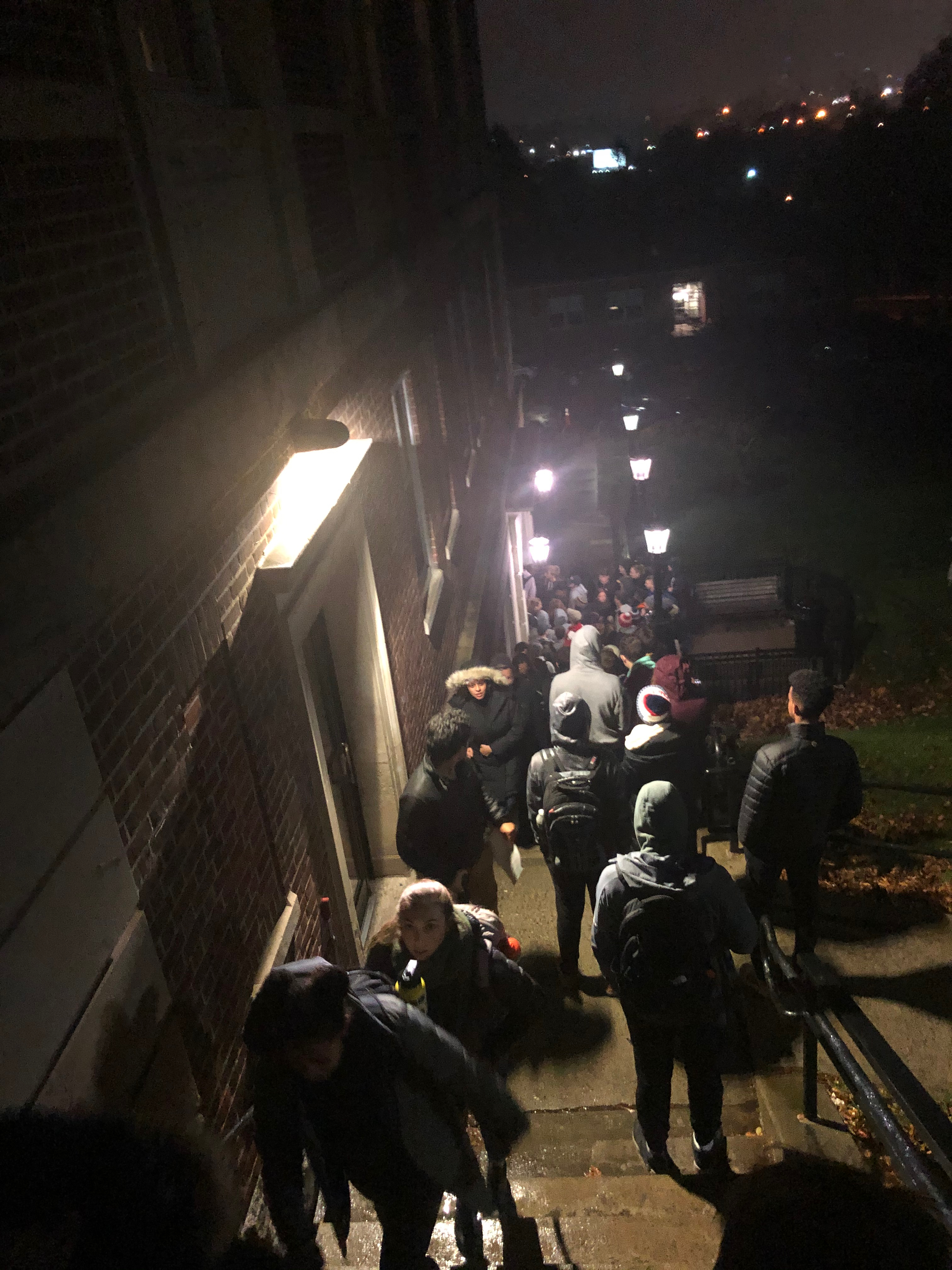 Eventually, public safety officers on site shut the doors due to capacity limits set by the fire department. Chief of Public Safety Shawn DeJong, along with other officers, stood in the doorway, turning away anyone else who tried to enter. Students who still wanted to see the lecture waited outside in the rain on the staircase next to Kimball Dining Hall.